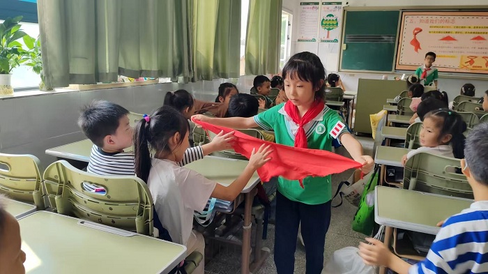 在一年级各中队,大队委的队员们化身“小老师”,走进教室,以生动亲切的语言为预备队员们讲解“六知六会一做”等少先队基本知识,在他们幼小的心灵中播撒下第一颗红色的种子。