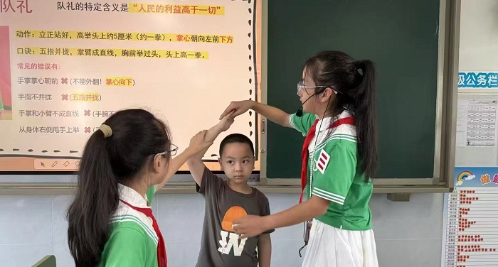 高年级各中队则在辅导员老师的带领下,重温入队誓词与队章知识,进一步加深对少先队组织的理解和热爱,强化了作为少先队员的责任感与使命感。