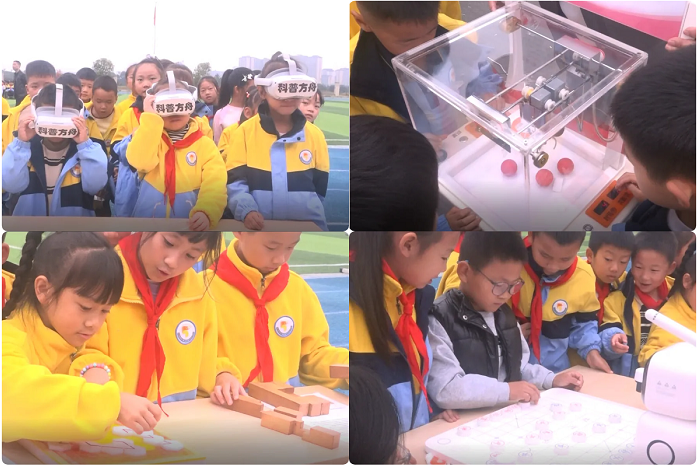 表演结束后,各年级开启了专属探索时间,打卡20个科技作品点位,近距离触摸科学装置,奔赴点位解锁更多科学奥秘。大家一边探索一边热烈讨论,小脑袋凑在一起交流发现,眼里闪烁着对科学的好奇与向往,校园里处处是欢笑与求知的身影。