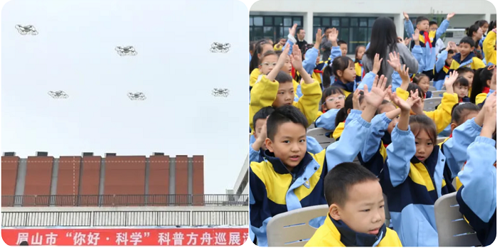 无人机飞行秀率先登场,牢牢抓住了全场目光!数十架无人机在空中默契联动,时而变幻出爱心、花朵的浪漫造型,时而化作“穿梭飞船”划出灵动轨迹,抬头望去,湛蓝的天空下尽是震撼人心的“空中科技画卷”。孩子们纷纷踮起脚尖、伸长脖子,小脸上写满惊叹,不时发出“哇!好厉害”的欢呼声,小手还跟着无人机的轨迹轻轻挥舞。