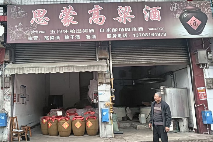 这个酒坊地处石桥南路227号,是思蒙镇早期民间匠人上个世纪八十年代集体创建的思蒙酒厂,当时刘老在这里当普通工人。单位解体后他依旧做酒生意,并创办了自己的家庭酒坊。他一干就是二三十年,全靠夫妻俩人艰苦奋斗,目的是保证质量不出问题,所以产销经营把控严格,消费者大都是回头客。