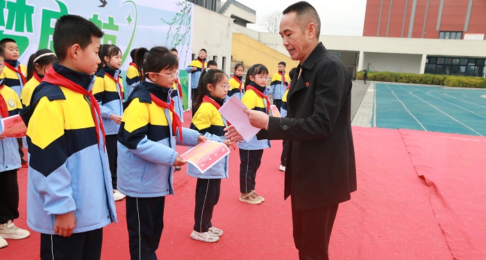 周谷苗先生带来的励志演讲真挚感人,分享的人生故事深深打动了在场师生。他用亲身经历告诉孩子们:梦想需要坚持,成功源于奋斗。田校长代表全校师生向周谷苗先生赠送锦旗,感谢他对教育事业的无私奉献。