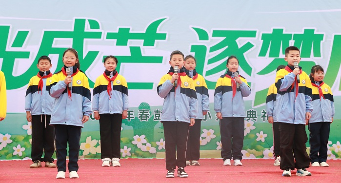 “勤学善思,刻苦向上;强国有我,逐梦启航!”在集体呼号环节,全体同学昂首挺立,右拳高举,铮铮誓言响彻校园。那一刻,少年意气风发,以青春之名许下对未来的庄严承诺。