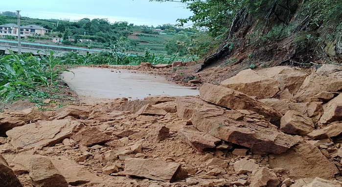 2025年8月5日,宝飞镇水晶村网格员在开展一日双巡工作时,于该村6组社道路发现一处岩石滑落,石块堆积在路中央,严重影响了附近村民的正常出行。