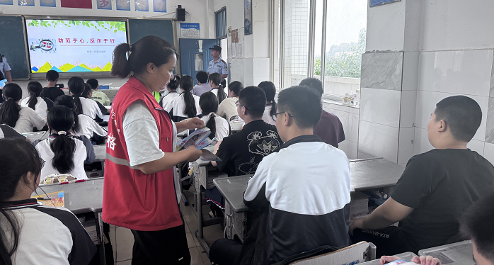 2025年9月8日,青岗乡综治办组织辖区内网格员与方家派出所民警一起走进青岗中学开展反诈主题宣传活动,进一步筑牢校园反诈防线,提升师生识诈、防诈、反诈能力。