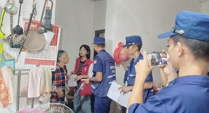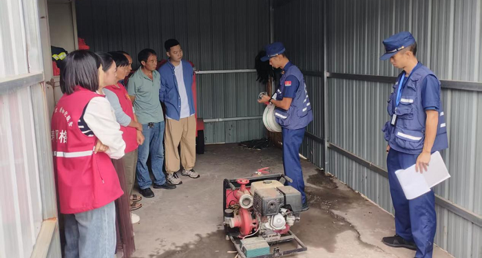 网格员和消防员一起向村民宣传消防安全知识,告知村民定期检查电器设备,要定期检查是否有线路断裂,电影插座损坏等问题,避免电器故障引起的火灾。