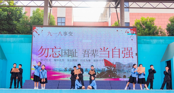 在“九一八事变”爆发94周年之际,为深切缅怀革命先烈,弘扬爱国主义精神,增强师生的历史责任感和使命感,眉山市东坡区苏洵小学与景贤小学分别于近日举行了以“铭记九一八,吾辈当自强”为主题的国旗下教育活动。