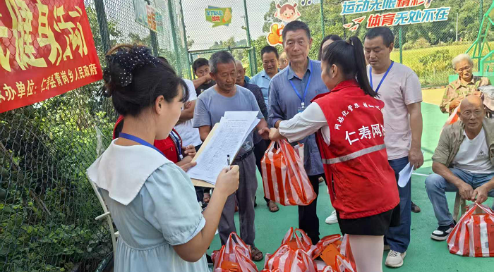 在活动开始之前,载满爱心物资的车辆驶入盘龙村文化广场。志愿者和网格员提前布置场地,铺设防滑垫、设置无障碍通道,并为行动不便者准备了轮椅专用接送车。考虑到近期高温天气,现场特别搭建遮阳棚,配备急救箱、矿泉水及防暑药品。我们为每位参赛者准备了运动礼包,包含吸汗毛巾、烧水壶、保温杯、和盆、桶等实用物品。