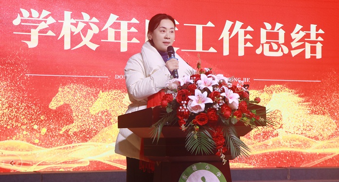 随后,校长刘芳发表了热情洋溢的新年致辞。她深情回顾了过去一学期学校在育人、教学等方面取得的扎实进步,对全体教职工的辛勤付出致以诚挚感谢,并勉励大家在新的一年里携手同心,以不变的育人初心,共同开启学校发展的新篇章。