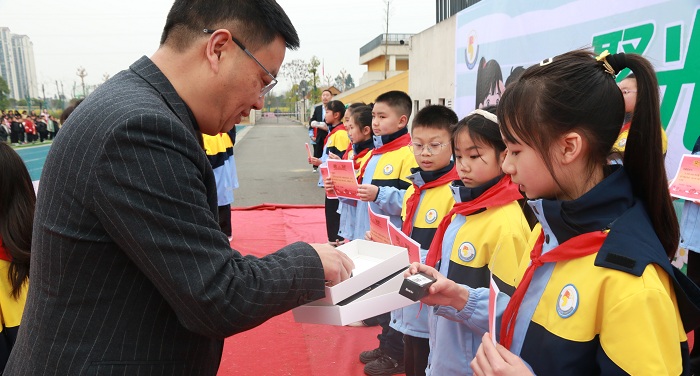 校园有爱,温暖相伴。本次开学典礼迎来了一位特别的客人——爱心企业家、华泰致远能源科技(四川)有限公司董事长周谷苗先生。多年来,周谷苗先生始终倾心助力学校发展,心系教育、情暖学子。少先队员代表为周谷苗先生敬献红领巾,表达最崇高的敬意。